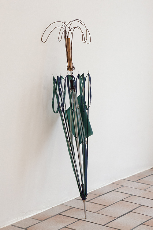 HaeAhn Kwon, The Muttering Retreat, 2017, found and altered umbrella, metal wire
