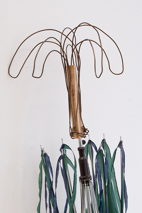 HaeAhn Kwon, The Muttering Retreat (detail), 2017, found and altered umbrella, metal wire