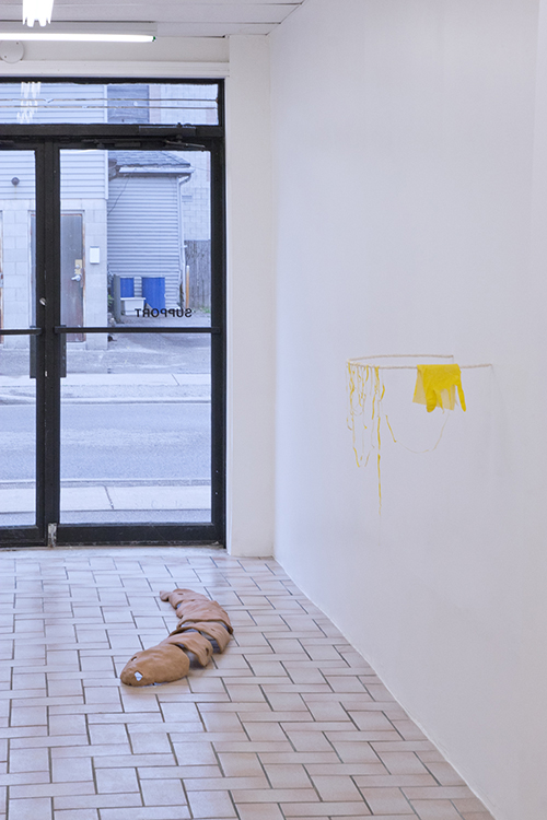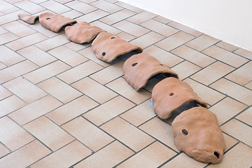 HaeAhn Kwon, How Do I Loop My Grip As the Cut? (detail), 2017, wire, pipe cleaner, papier mâché, rubber glove