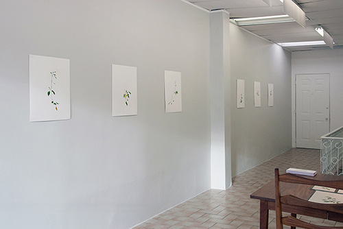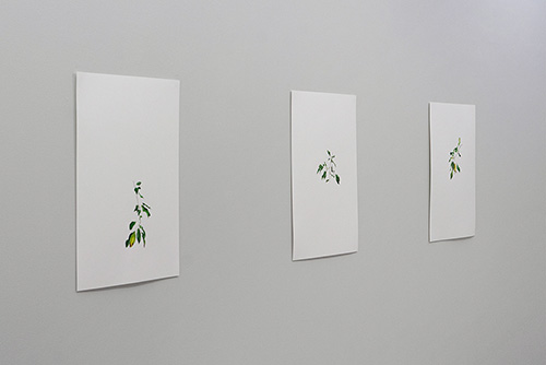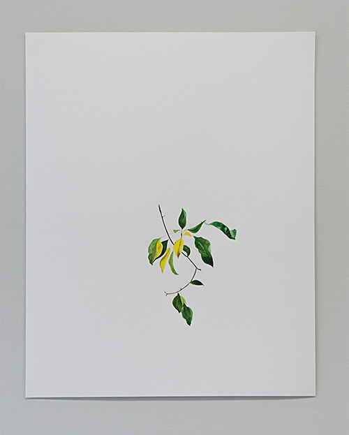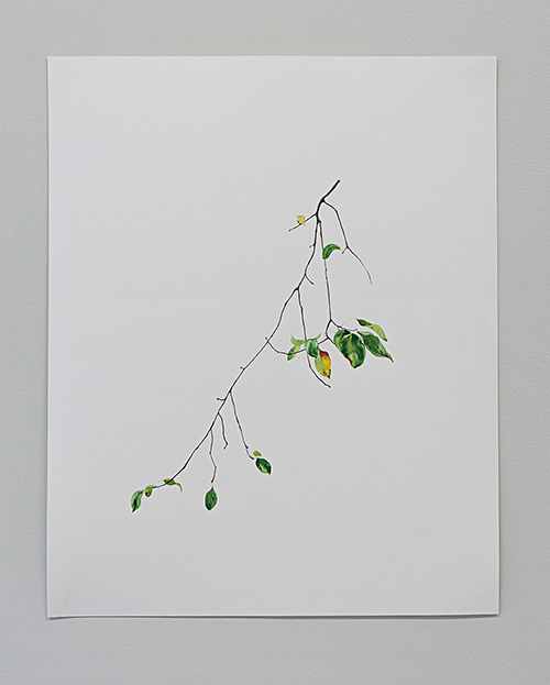 With these drawings, Salimi is an argument against the God-who-sees-everything. To be human is to trace the structure of the local with the device of your senses, with the matter of your own body. Is this the last day above the earth for one of the pale yellow leaves that takes up the light into its thin, drying membrane? Salimi watches, translates a curl, a bending towards air as if floating or flying, an elegant thrown-ness, or an ineluctable drooping. She assumes the identity of each leaf within the negotiated collectivity of a tense, clustered branch as it reaches for the light or begins to fall slowly, imperceptibly, away from existence towards the other side of cyclical time. She discovers beauty and melancholy in this.